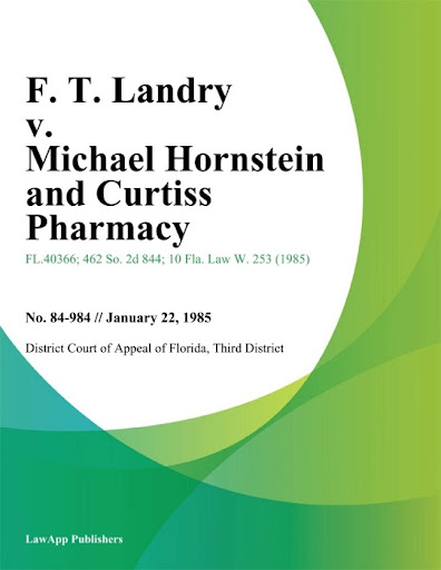 (DOWNLOAD) "F. T. Landry v. Michael Hornstein and Curtiss Pharmacy" by Third District. District Court of Appeal of Florida " eBook PDF Kindle ePub Free